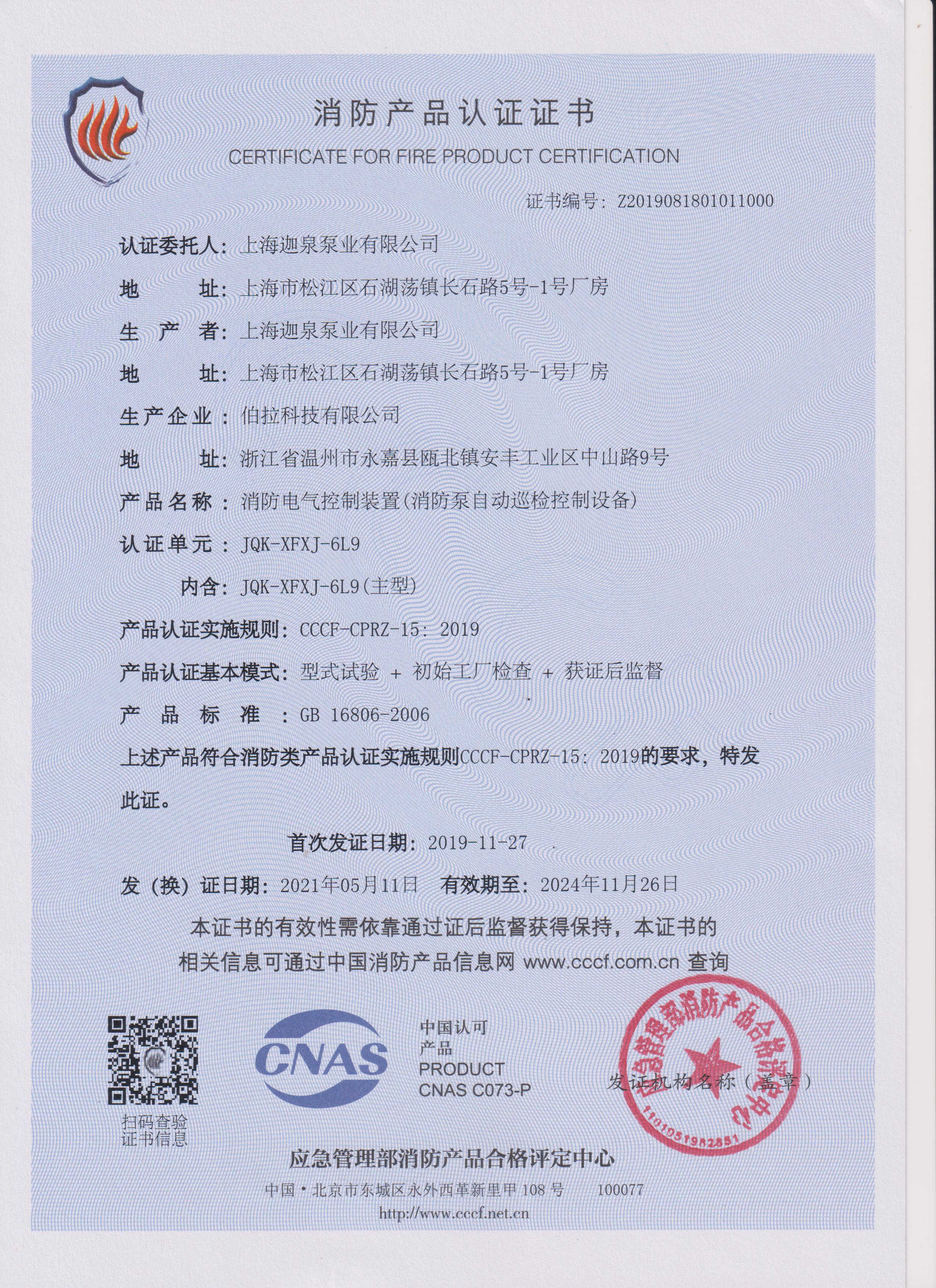 CCCF消防產物認證證書